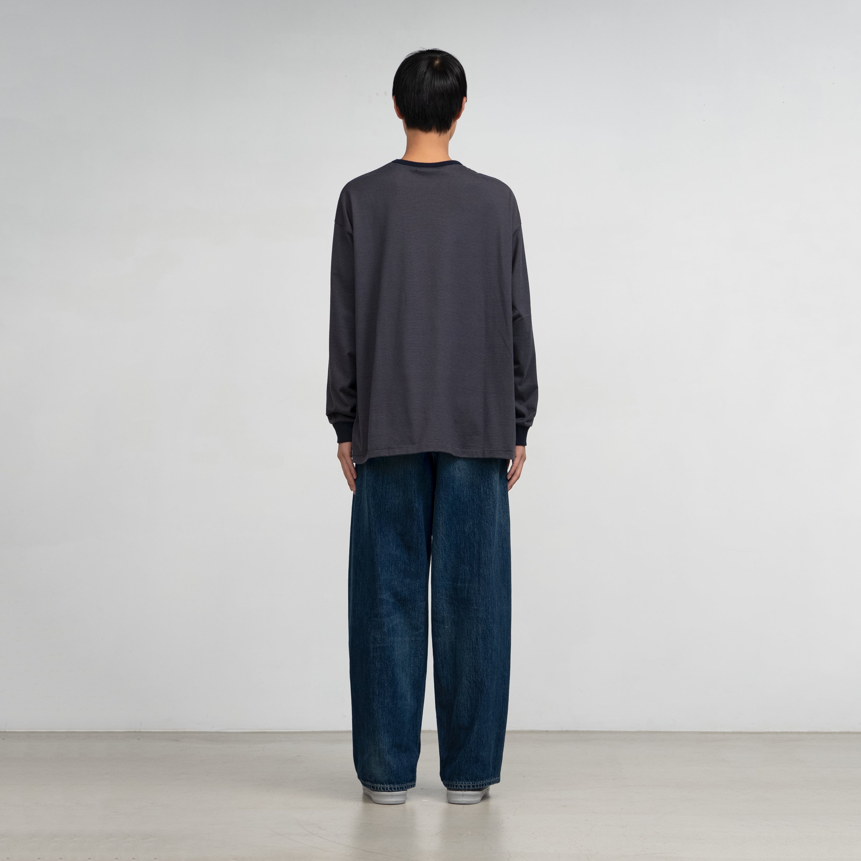 130年もの歴史を誇る米国Cone Denim社が作る13.75オンスのセルビッチデニム。ウエストにはタックが入り、ヒップからワタリにかけて適度な余裕があるワイドストレートパンツ。旧式力織機でゆっくりと織り上げることで生まれる、生地表面のざらっとした凹凸やムラがデニム本来の風合いを感じさせる魅力的な素材。ダークフェイドはメリハリのある濃淡が特徴です。